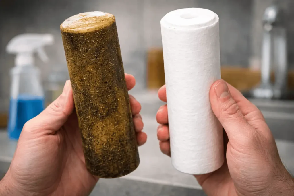 If your water starts tasting strange, slows down, or the filter looks off—it’s time. Otherwise, change it every 6 months as a rule of thumb.